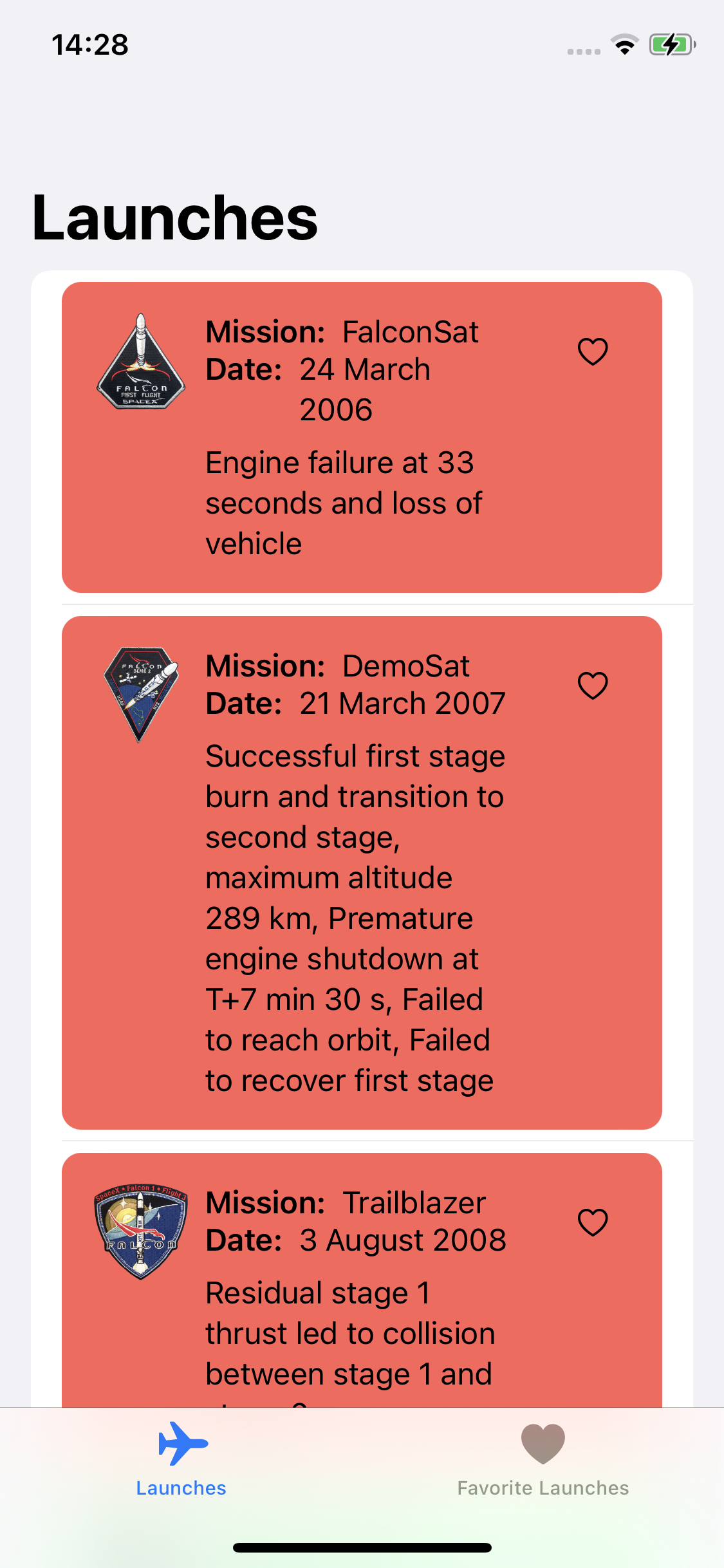 This application presents a list of SpaceX launches and it was architected using The Composable Architecture. It was built as a proof-of-concept to demonstrate how The Composable architecture works and how it can be applied to SwiftUI projects.